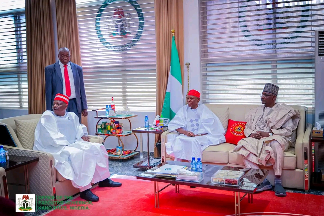 His Excellency Governor Abba K. Yusuf received Senator Rabiu Kwankwaso, National Leader of the NNPP, and HE Governor Abdullahi Sule of Nassarawa State on a courtesy visit to the Kano State Government House.